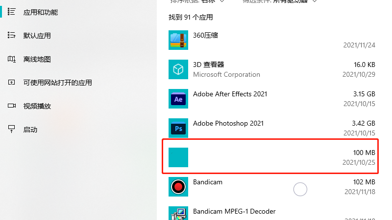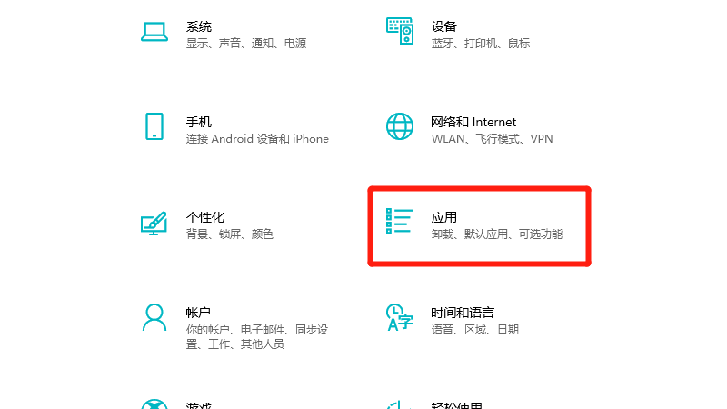 在展开的界面中,选择应用。