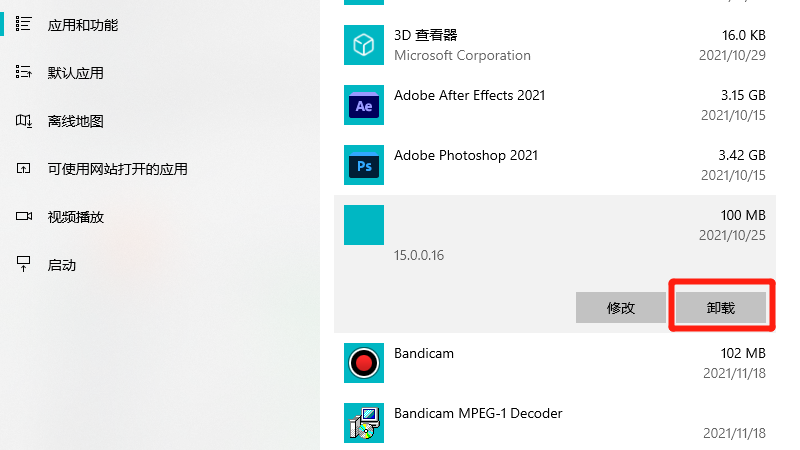 在展开的选项中,点击卸载即可。