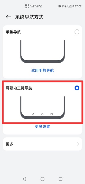 在展开的界面中,选择屏幕内三键导航即可。