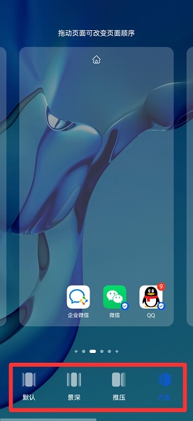 简介:1、在手机桌面中,双指向内滑动屏幕。2、在展开的选项中,点击切换效果。3、在展开的界面中,设置切换效果即可。本视频由华为p50、HarmonyOS 2.0.0、录制