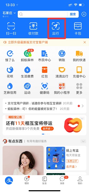 乘坐公交车用手机扫二维码付款需要在支付宝界面中,点击出行即可。以iPhone 12手机为例,乘坐公交车用手机扫二维码付款的步骤为2步,具体操作如下:在支付宝界面中,点击出行。