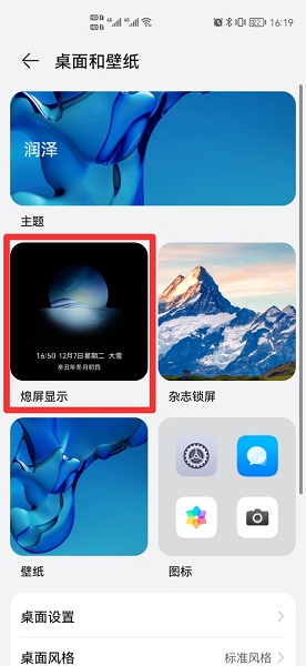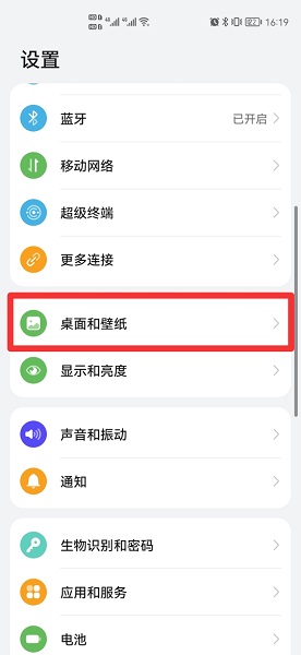 设置手机黑屏显示时间需要在桌面和壁纸中,将熄屏显示开启即可。以手机华为p50为例,设置手机黑屏显示时间的步骤分为3步,具体操作如下:在手机设置界面中,点击桌面和壁纸。