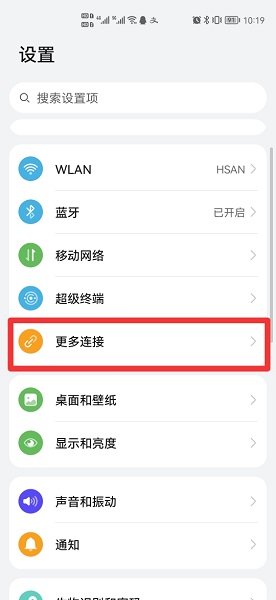手机打开dlna需要在手机更多连接中,将无线投屏开启即可。以手机华为p50为例,开启手机dlna的步骤分为3步,具体操作如下:在手机设置界面中,点击更多连接。