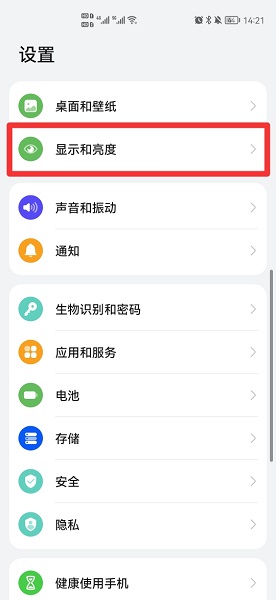 状态栏在手机屏幕左上角进行查看即可。以手机华为p50为例,设置状态栏的步骤分为3步,具体操作如下:在手机设置界面中,点击显示和亮度。