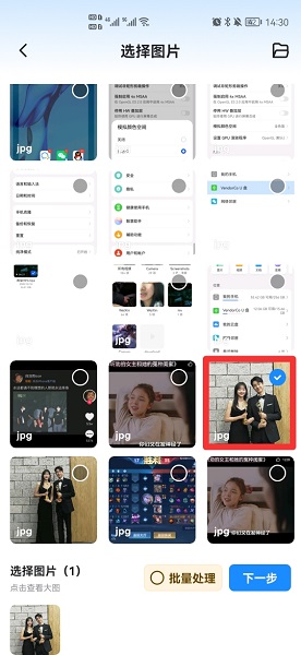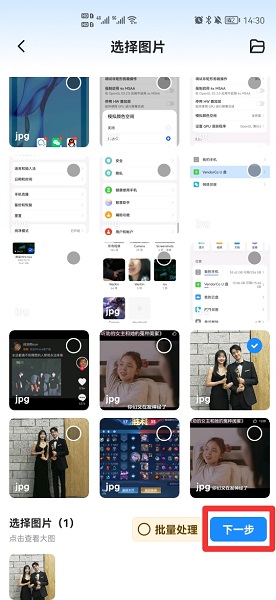 在选择照片后,点击下一步