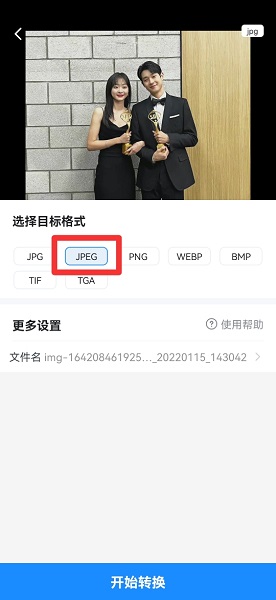 在展开的界面中,选择JPEG格式。