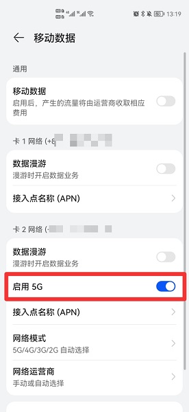 在移动数据界面中,即可查看5G开关。