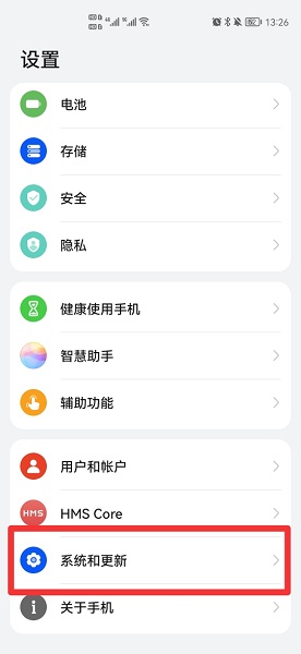 开启老年模式需要在手机系统和更新中,将简易模式开启即可。以手机华为p50为例,开启老年模式的步骤分为3步,具体操作如下:在手机设置界面中,点击系统和更新。