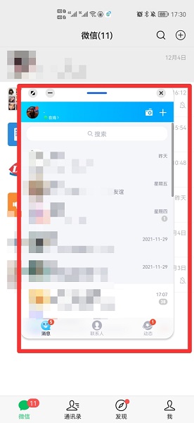简介:1、在微信界面中,向左滑屏幕。2、在展开的界面中,点击QQ。3、在QQ展开界面中,查看分屏即可。本视频由华为p50、HarmonyOS 2.0.0、录制