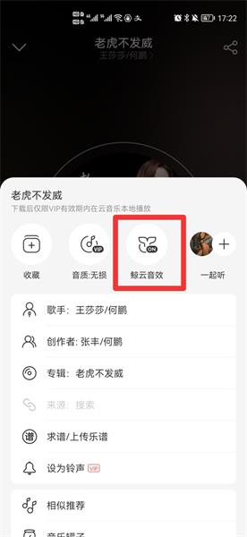 更换云音乐转盘特效需要在网易云音乐中,选择鲸鱼音效并设置动效即可。以手机华为p40为例,更换云音乐转盘特效的步骤分为4,具体操作如下:在网易云音乐播放界面中,点击三点。