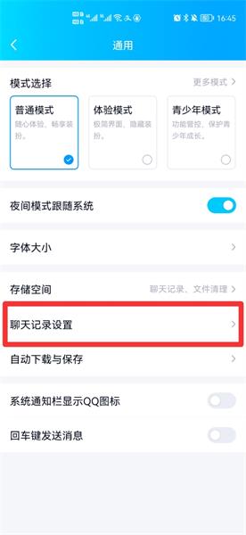 在通用界面中,点击聊天记录设置。