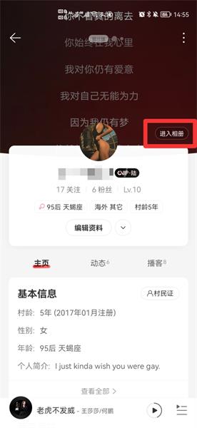 在展开的界面中,点击进入相册。