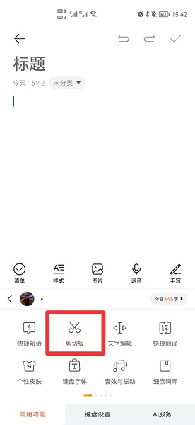 在展开的输入法中,点击剪切板。
