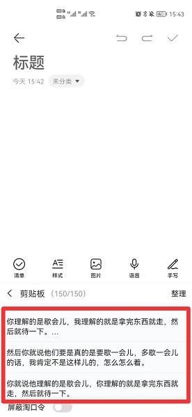 在展开的剪切板中,即可恢复历史记录。