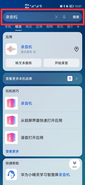 简介:1、在手机界面中,下拉智慧搜索。2、在展开的界面中,搜索录音机。3、在搜索结果界面中,定位录音机即可。本视频由华为p40、HarmonyOS 2.0.0、录制