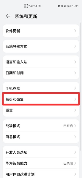 在系统和更新界面中,即可找到备份和恢复。