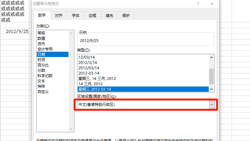 在展开的日期中,设置区域为香港。