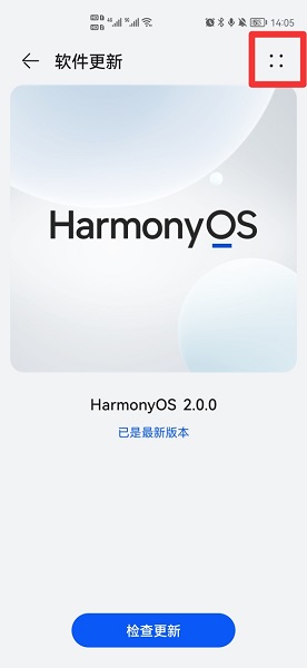 在软件更新界面中,点击右上角四点。