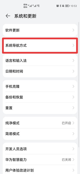 在系统和更新界面中,点击系统导航方式。