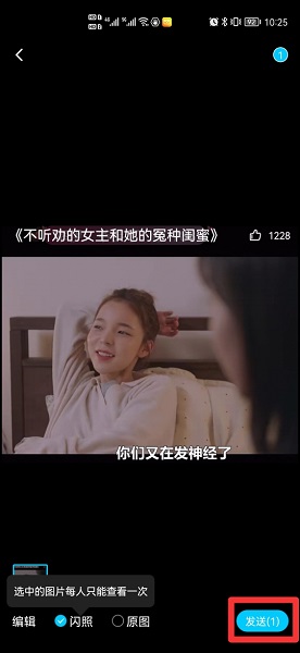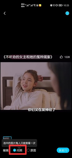 在选中闪照后,点击发送即可。
