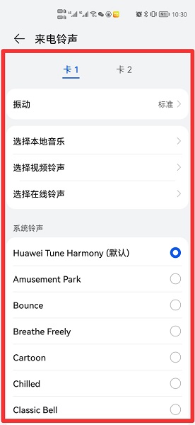 在来电铃声界面中,即可设置来电。