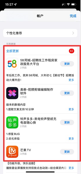 简介:1、在App Store界面中,点击头像。2、在展开的界面中,更新软件即可。本视频由iPhone 12、iOS15.4、录制