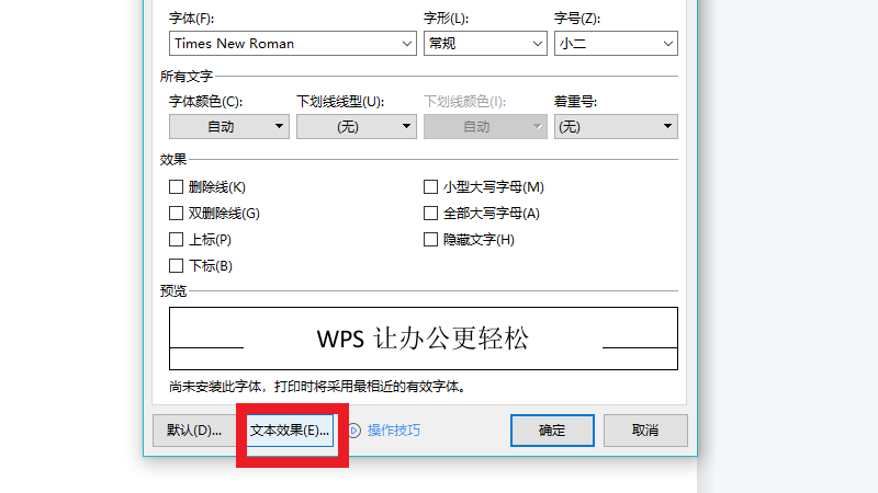 在字体界面中,点击文本效果。