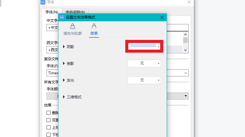在文本效果界面中,设置阴影。