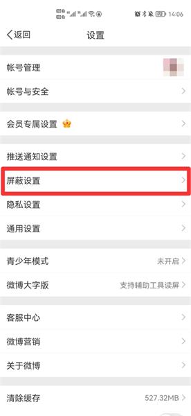 在展开的界面中,点击屏蔽设置。