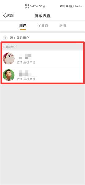 在展开的界面中,即可查看已屏蔽用户。