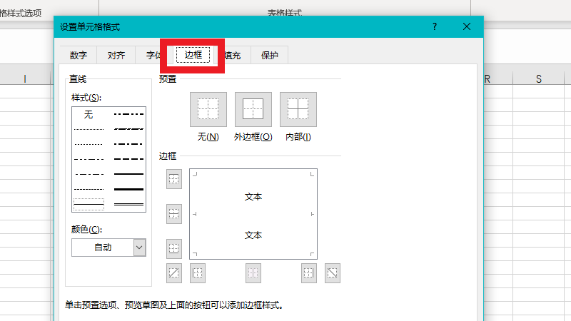 在设置单元格格式界面中,点击边框。