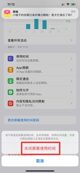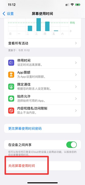 在屏幕使用时间界面中,点击关闭屏幕使用时间。