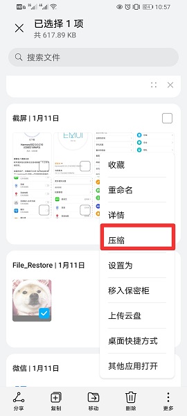 手机上图片压缩打包发送需要在文件管理界面中,选中图片后压缩分享即可。以手机华为p40为例,手机上图片压缩打包发送的步骤分为7步,具体操作如下:在件管理界面中,选中图片。