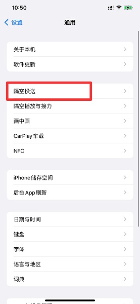 在通用界面中,点击隔空投送。