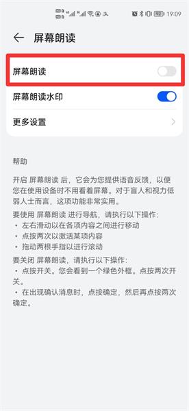 在展开的界面中,关闭屏幕朗读即可。