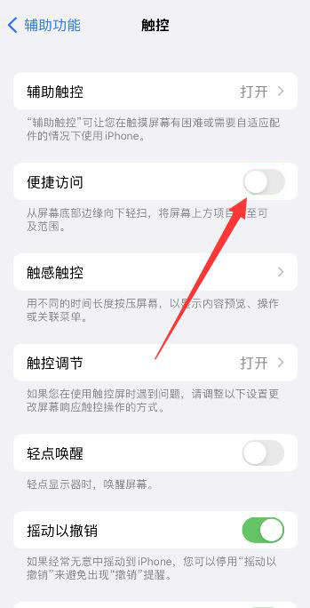 点击触控,进入页面, 将便捷访问右侧按钮关闭即可。
