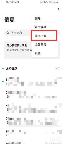 在展开的界面中,点击骚扰拦截。