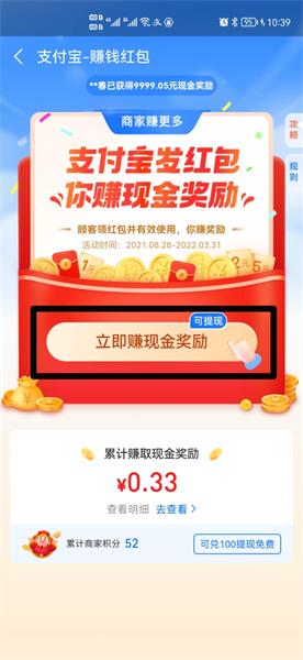 简介:1、在支付宝我的界面中,点击商家服务。2、在展开的界面中,点击立即去赚。3、在展开的界面中,点击立即赚现金奖励即可。本视频由华为p40、HarmonyOS 3、支付宝10.2.53录制