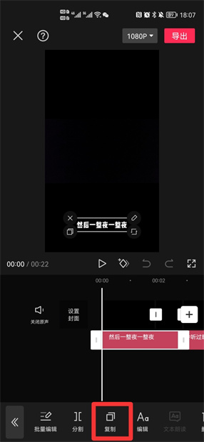 在选中字幕后,点击复制即可。