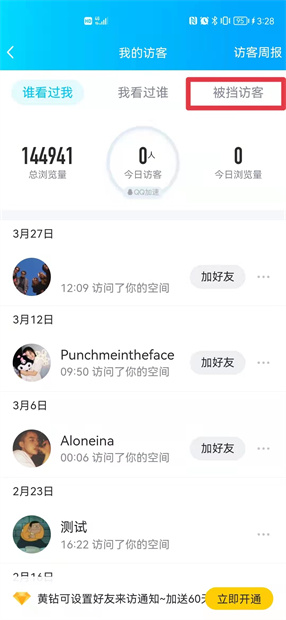 简介:1、在QQ空间中,点击访客。2、在我的访客界面中,点击被挡访客。本视频由华为p40、HarmonyOS 2.0.0 、QQ 8.8.85.7685录制