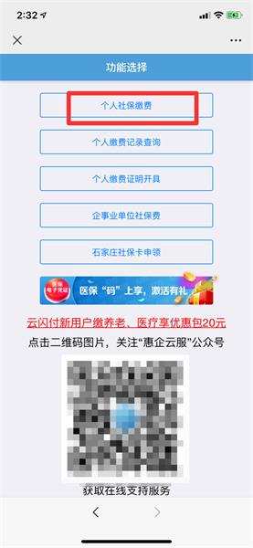 在功能选择界面中,点击个人社保缴纳。