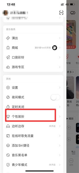 在三杠界面中,点击个性装扮。