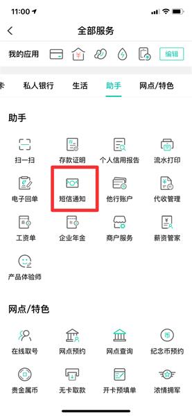 在助手界面中,点击短信通知。