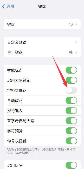 点击键盘选项,进入页面后,将空格键确认右侧按钮关闭即可。