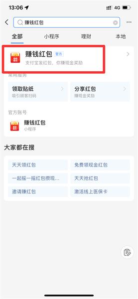 支付宝让别人扫自己的码领红包需要将自己的领码红包找出即可。以iPhone 12手机为例,找出支付宝红色领钱码的步骤为4步,具体操作如下:在支付宝搜索框中,输入赚钱红包。