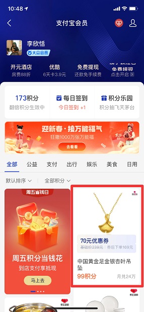 支付宝积分无法兑换现金,只可以兑换其他物品。以iPhone 12手机为例,支付宝兑换物品的步骤为4步,具体操作如下:在支付宝我的界面中,点击支付宝会员。