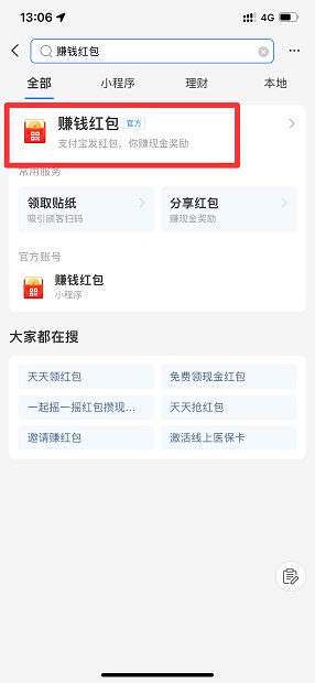 查看支付宝红色领钱码需要在支付宝界面中搜索赚钱红包即可。以iPhone 12手机为例,查看支付宝红色领钱码的步骤为4步,具体操作如下:在支付宝搜索框中,输入赚钱红包。