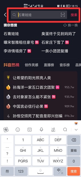 在展开的界面中,输入抖音号或昵称进行搜索即可。
