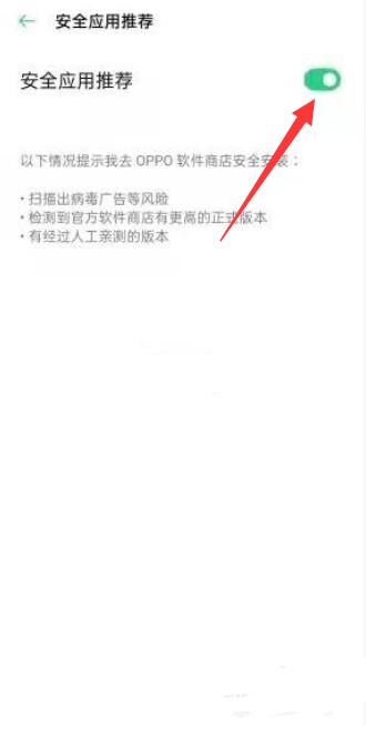 进入页面后,将安全应用推荐右侧按钮打开即可。