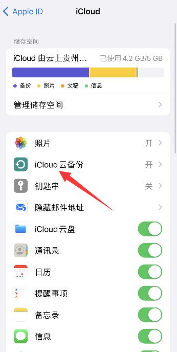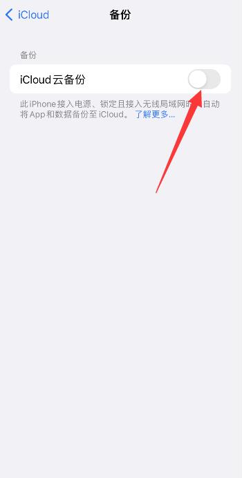 进入页面后,将iCloud云备份右侧按钮关闭即可。